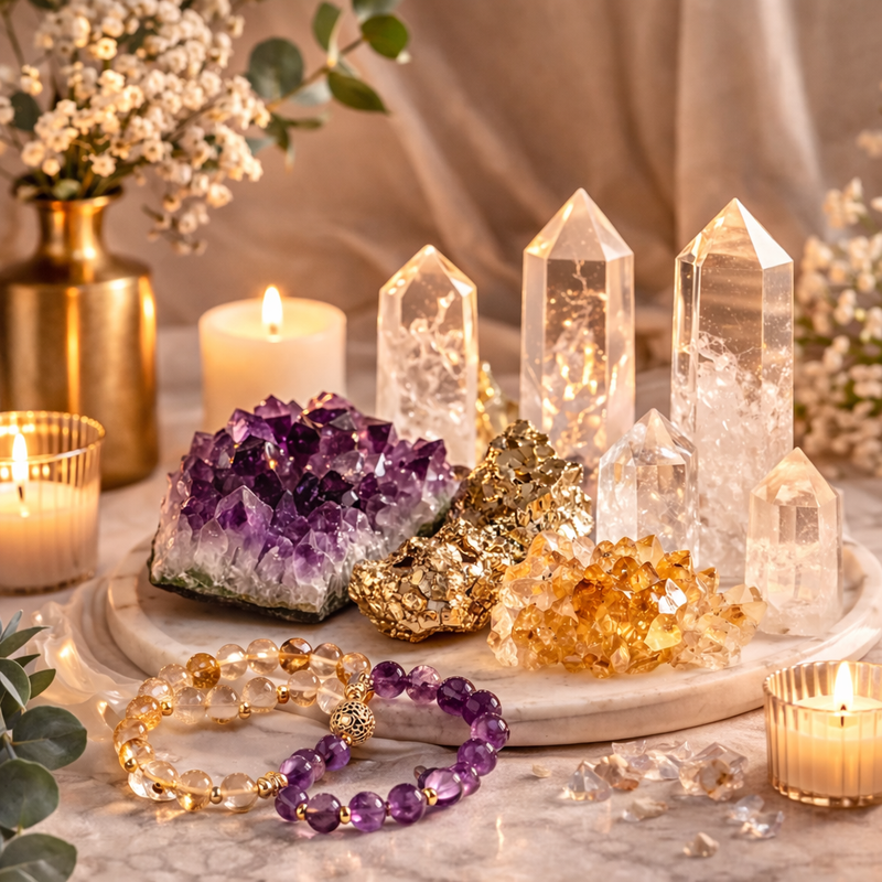 From crystal bracelets to wealth attractors and vastu products, every piece is carefully curated to support abundance, clarity, and positivity—making spirituality simple for everyday life.