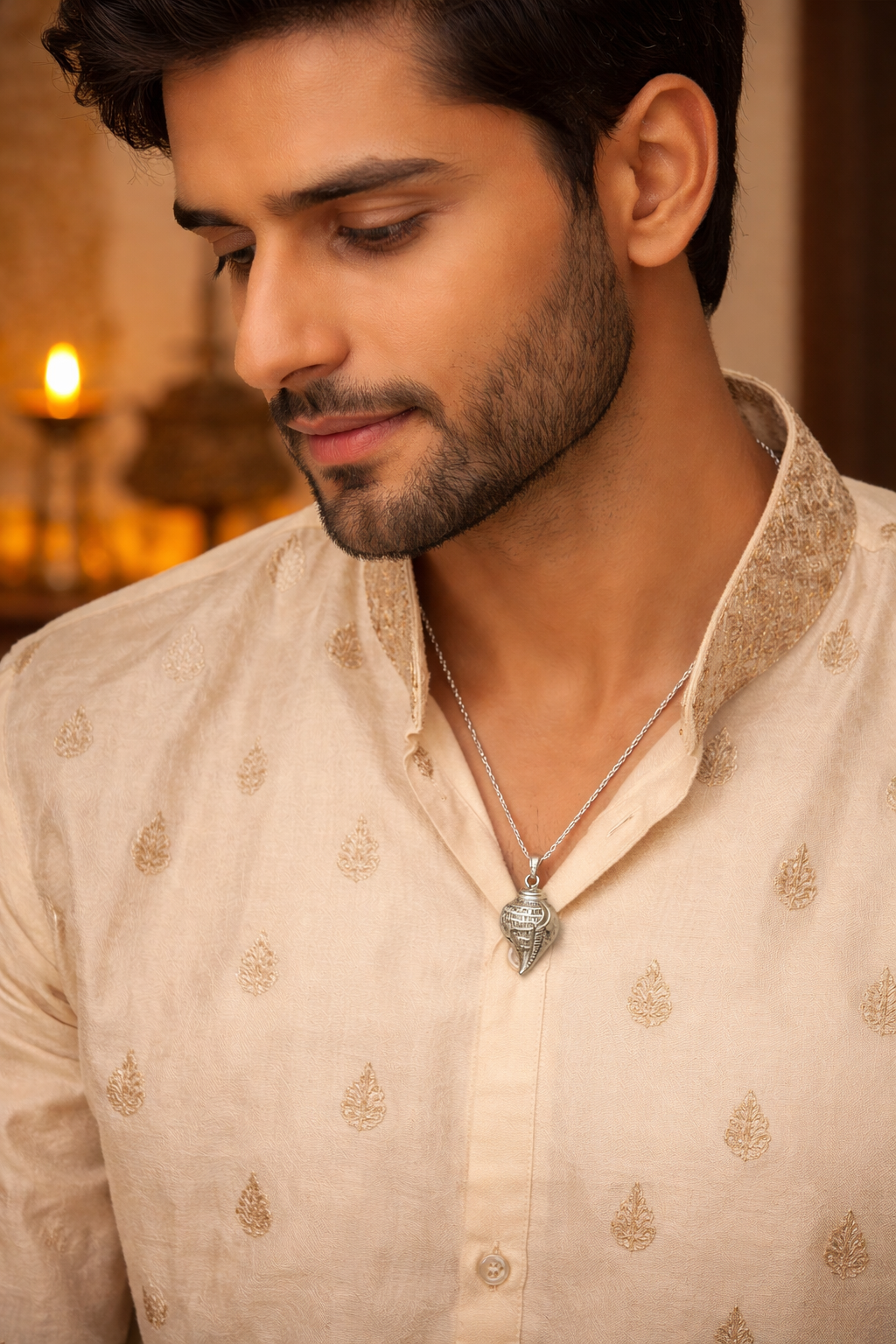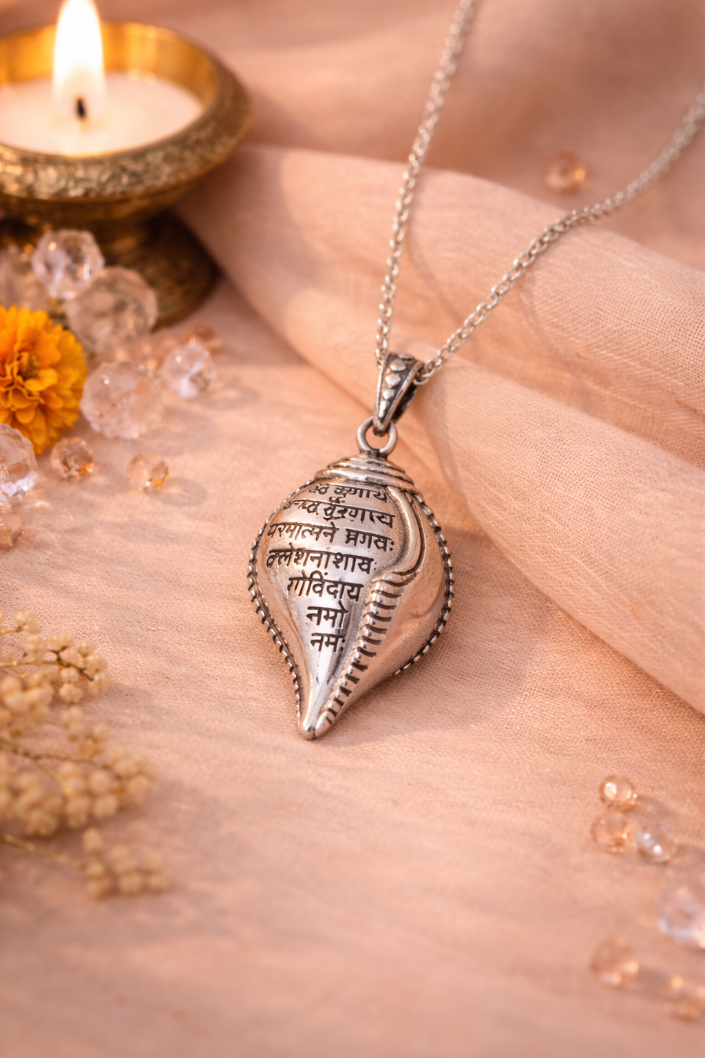 Yeh pendant sirf ek sundar accessory nahi, balki Shri Krishna ke pavitra shankha ka prateek hai — jiska naad andhkaar aur paapon ko door karta hai, aur jeevan mein shanti, positivity aur sukh ka pravesh karwata hai.